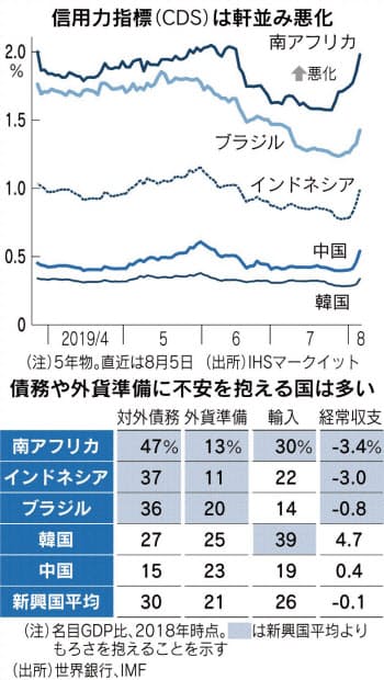 7月31日に米連邦準備理事会(FRB)が10年半ぶりの利下げに踏み切ったにもかかわらず、世界の隅々でマネーはリスク回避を強めている。国際金融協会(IIF)によると、8月1日から6日までに新興国は64億ドル(約6700億円)もの資金流出超となった。